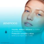 Crema-Gel hidratante que protege contra los rayos UV y la contaminación, hidratando intensamente por 24 hrs, fortaleciendo la barrera de la piel y ayudando a prevenir el envejecimiento prematuro de la piel por la exposición al sol sin protección.