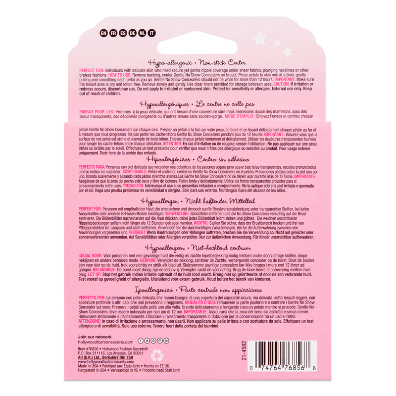 Correctores suaves que no se ven. Estos pétalos mantienen los pezones envueltos sin irritar la piel delicada. Un adhesivo hipoalergénico para la piel proporciona una cobertura segura pero suave, mientras que un material de papel especialmente diseñado garantiza que estos correctores permanezcan perfectamente ocultos bajo las telas más transparentes. ¡Delicado y discreto para que puedas lucir transparente sin miedo!