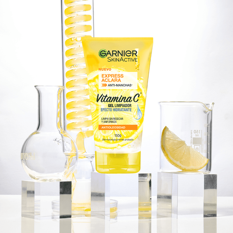 El Gel Limpiador Garnier Express Aclara Efecto Hidratante combina el poder de la Vitamina C y extractos naturales para ofrecer una limpieza profunda y efectiva. Diseñado para eliminar impurezas y residuos de maquillaje, este gel no solo purifica tu piel, sino que también la hidrata y unifica su tono. Ideal para todo tipo de piel, su uso diario deja el rostro suave, fresco y luminoso.