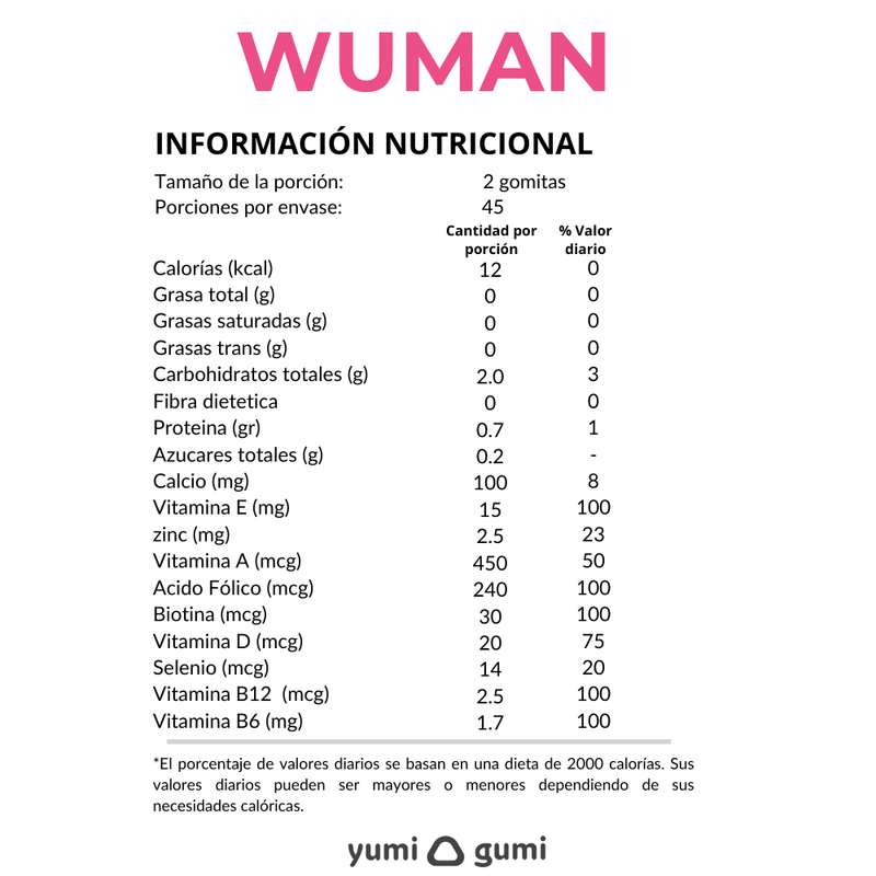 Gomitas multivitaminicas sabor mandarina. El frasco contiene 90 gomitas (45 porciones).Esta mezcla multivitamínica para mujeres contiene vitaminas B para aumentar la energía, vitamina D y calcio para mejorar la salud ósea , selenio y vitaminas A y E.