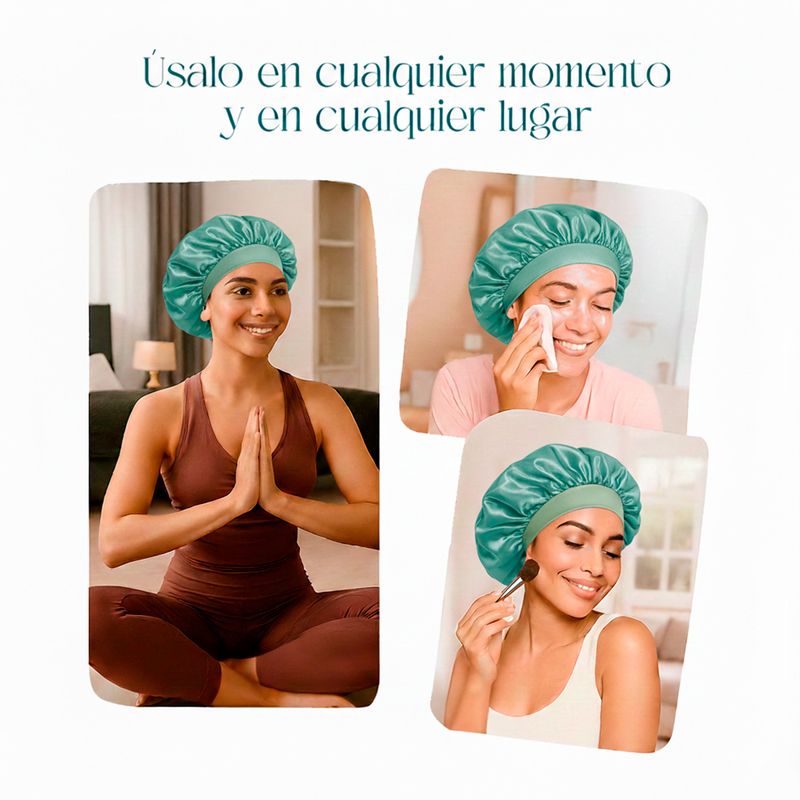 Gorro de satín para dormir que protege el cabello durante el descanso, ayuda a reducir el frizz y mantener la suavidad natural en todo tipo de cabello. Dimensión: 33cm