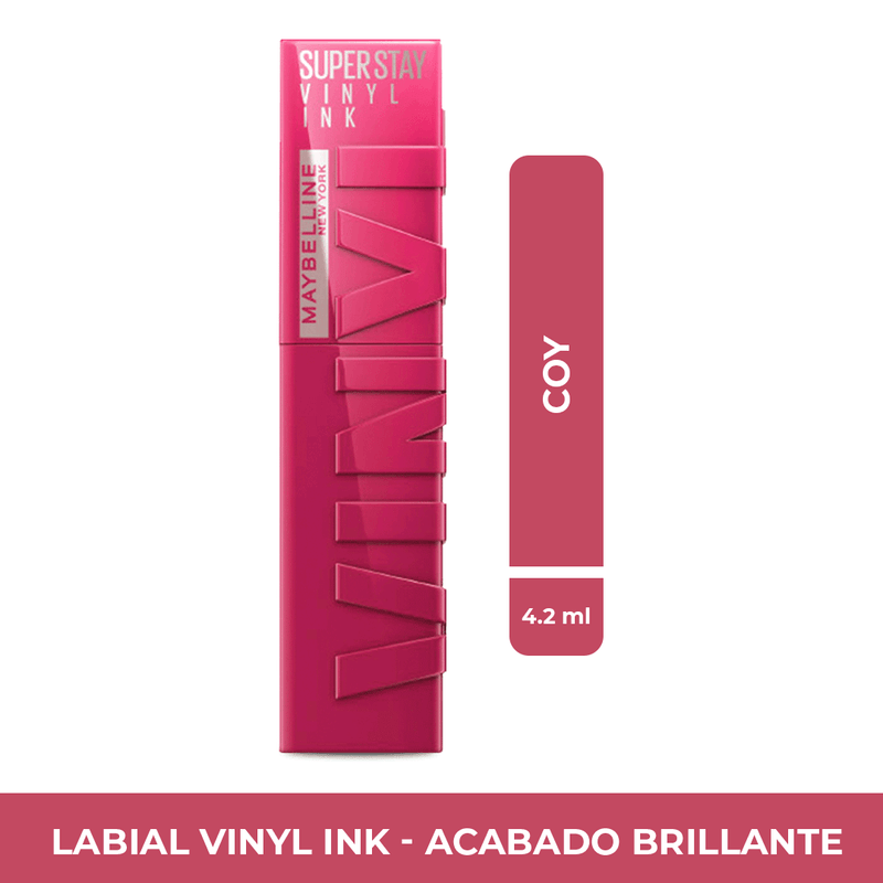 Labial líquido brillante Maybelline Vinyl Ink Coy 4.2 ml