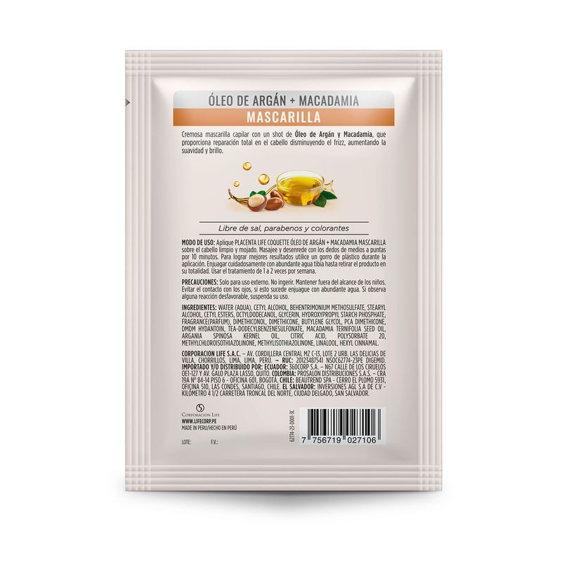 Mascarilla Coquette Óleo de Argán & Macadamia 70g Und