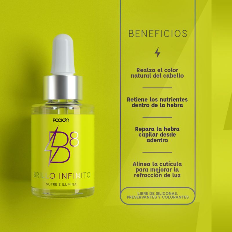 Óleo Capilar Multifuncional es un aceite versátil, libre de Siliconas, Parabenos, Preservantes y Colorantes, enriquecido con Omega 6,9, Vitaminas E, F, Ácidos grasos y sustitutos de Siliconas de origen 100% natural que neutralizan las cargas eléctricas que generan frizz. Fortalece y mejora la peinabilidad, flexibilidad y elasticidad, revelando un cabello más sano. B8 cuenta con una absorción ultraligera que no deja residuos ni en tus manos, ni el cabello. Poder, Energía y Movimiento Nuestro óleo es Libre de Siliconas, Parabenos, Preservantes y Colorantes, enriquecido con Omega 6 y 9, Vitaminas E y F, Ácidos grasos y sustitutos de Siliconas de origen 100% natural que neutralizan las cargas eléctricas que generan frizz.