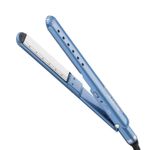 Plancha con 5 niveles de temperatura de manejo a perilla, con sistema de ventilación y tecnología Nanotitanium, placa de 25 mm. Trabaja en cabello húmedo y seco.
