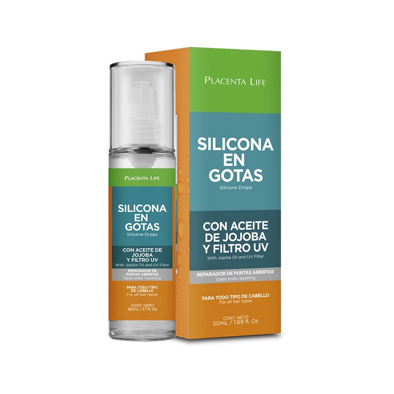 Aplicar en la palma de la mano un par de gotas de la silicona Placenta Life luego frotar con las dos manos y aplicar en las puntas, sin tocar la raíz.