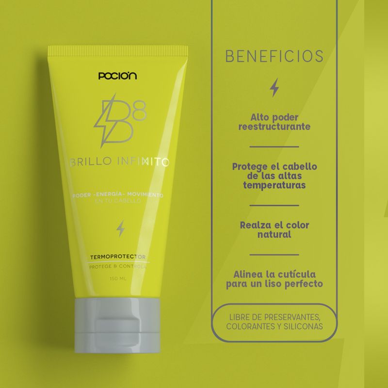 B8 Termoprotector, nos brinda la riqueza de la gran biodiversidad amazónica plasmada en los activos más poderosos para crear una auténtica mezcla de alta afinidad, capaz de proporcionar un sensorial superior y cuenta con hidratantes de alta tecnología que neutralizan el impacto del calor.